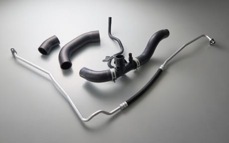 水素タンクに補填された水素をFCスタックに供給するホース。分子量が小さい水素に対する非常に高度なシール性要求に応え、いかなる条件下でも水素を車外に漏らしません。